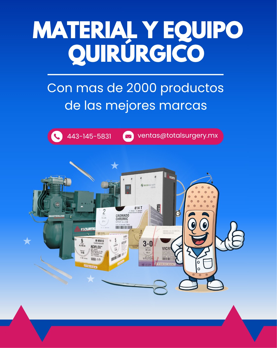 Instrumental medico, rehabilitación, electrocirugía, curación, estuches, maletines y mucho más.